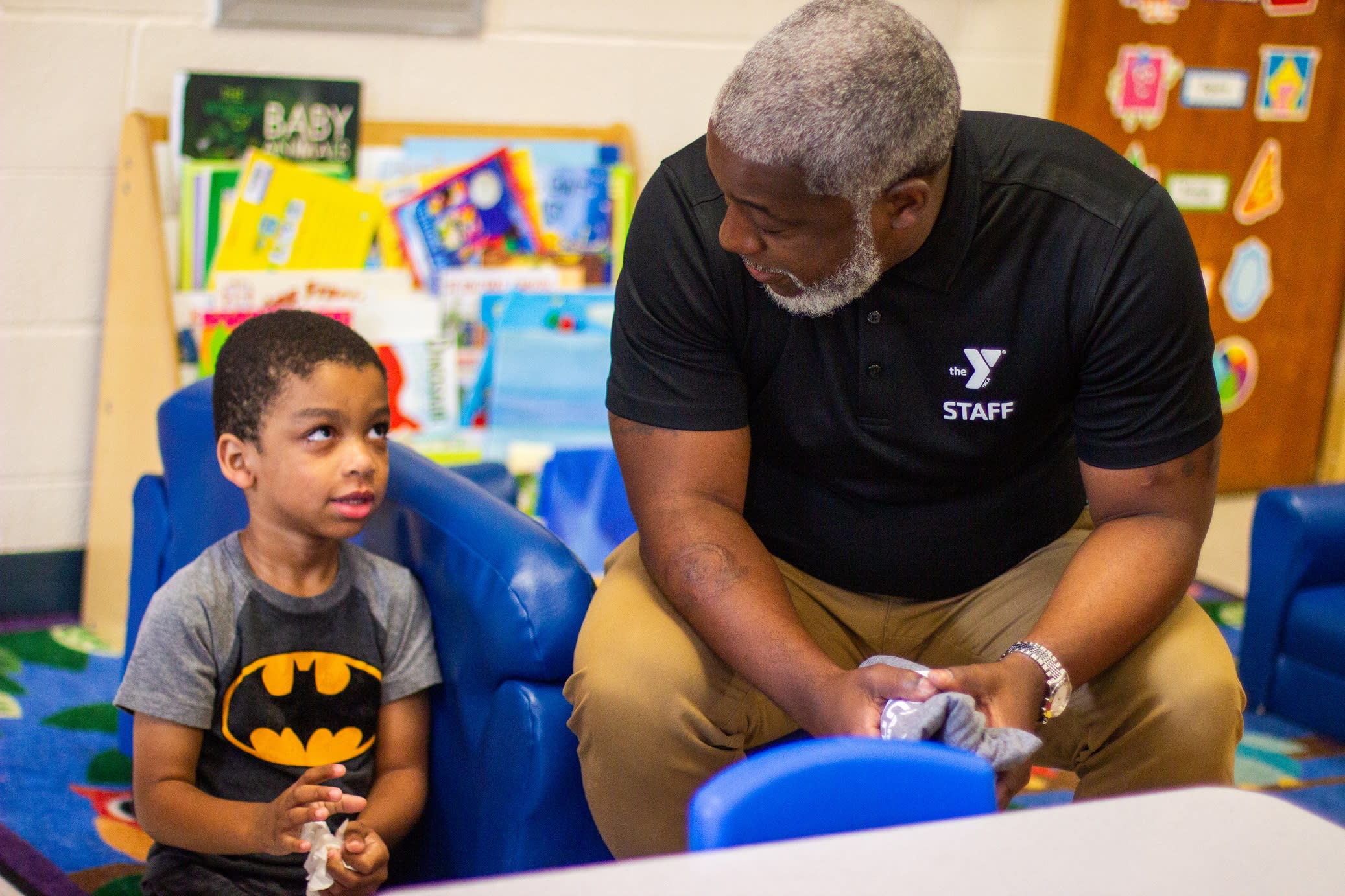 Photo Caption 1: President & CEO, Bertram L. Lawson II speaks with a student at the Oscar Lasko YMCA.